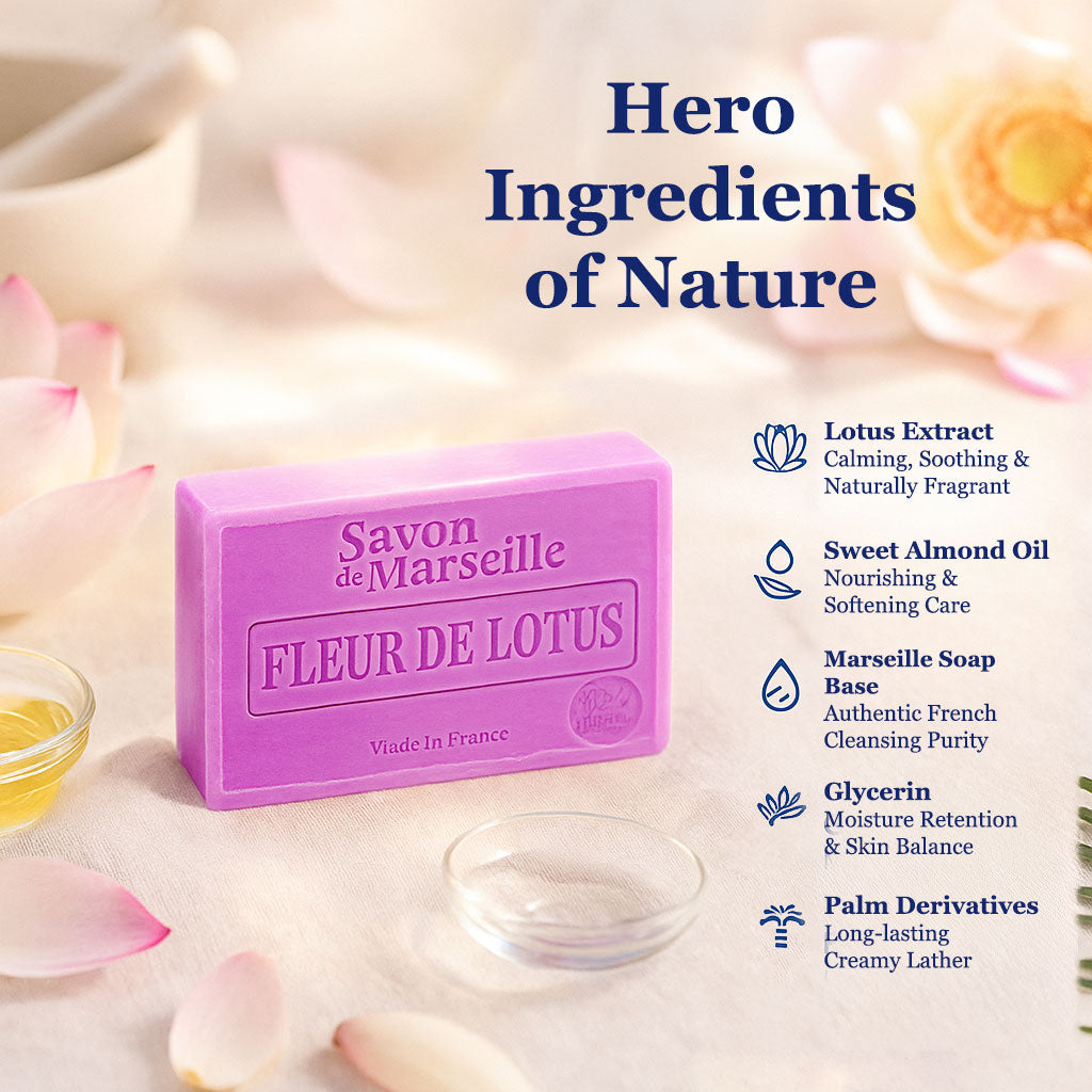 For a fragrant soap with floral and green notes we have chosen Lotus Flower. This plant, highly symbolic in Buddhist and Hindu cultures, brings all its tenderness and watery facets for a pleasant hand wash or shower.