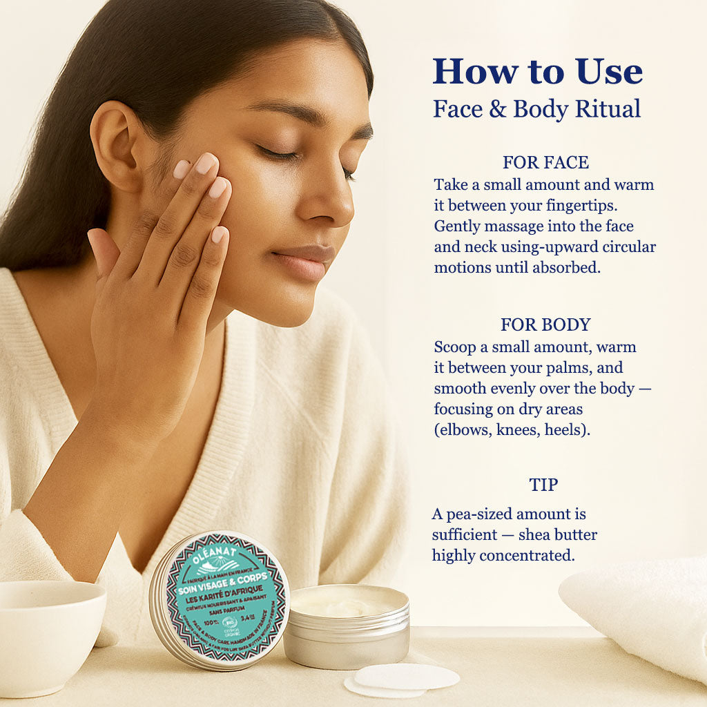 This unscented creamy shea butter is a very versatile treatment. It moisturizes the upper layers of the epidermis, nourishes and soothes the skin and hair thanks to its richness in essential and unsaponifiable fatty acids. It is recommended as a treatment for all skin types. Formulated without fragrance, it is particularly recommended for dry and sensitive skin. Its light and creamy texture allows you to easily apply it to the face, body and even the ends of the hair.